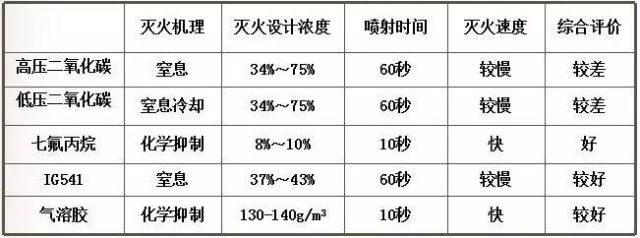 工程應(yīng)用時,應(yīng)綜合考慮:滅火可靠性、環(huán)保性、對設(shè)備和人員的安全性、工程造價、技術(shù)成熟性等因素,選擇最佳的滅火系統(tǒng)。