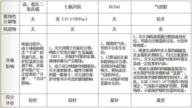 高、低壓二氧化碳、IG541、七氟丙烷、氣溶膠等氣體滅火系統(tǒng)基本上都具有不導(dǎo)電、腐蝕性小、無浸漬、滅火后不留痕跡的特點,總體來說對大多數(shù)保護(hù)對象,包括電器設(shè)備、儀器儀表、圖書檔案等都是安全的。
