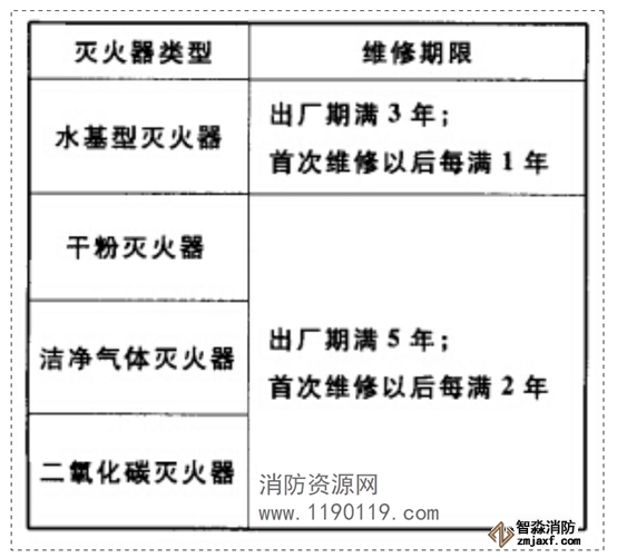 根據GB50444要求,只要達到或超過維修期限,即使滅火器未曾使用過,即使定期巡檢正常,也應及時送至滅火器生產企業維修部門或其授權的維修機構進行維修。