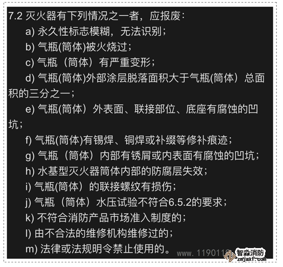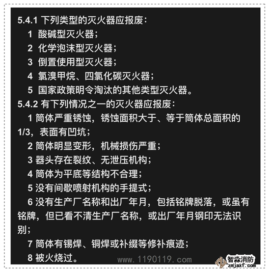 GB50444和GA95均規定了滅火器需要報廢的情形,在滅火器的日常和定期巡檢中,若發現以下情況之一的,應予以報廢: